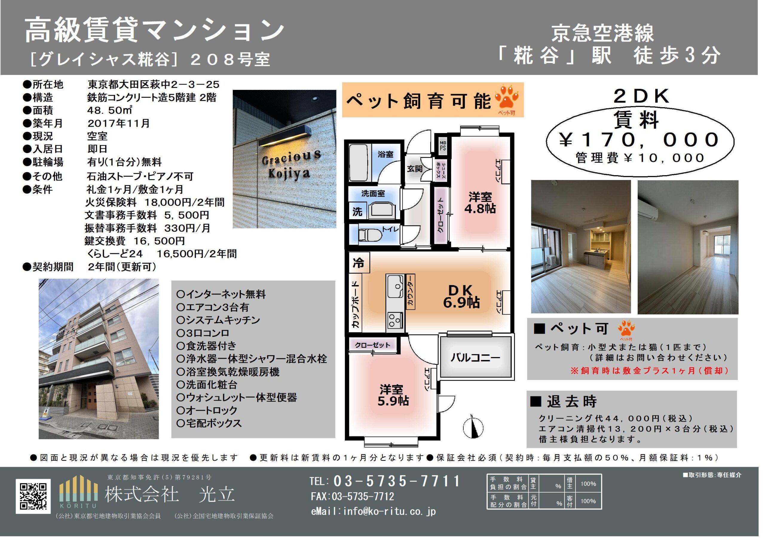 グレイシャス糀谷208号室賃貸募集開始いたしました。